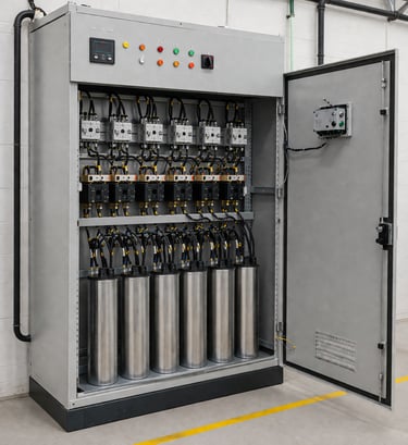 Oferecemos soluções completas em projeto, implantação e manutenção de bancos de capacitores, visando a melhoria da qualidade de energia elétrica e a otimização do desempenho de sistemas industriais e comerciais.